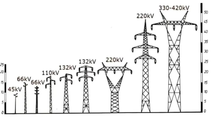 ఈ ప్రక్రియలో, ఐరన్ టవర్ మరియు పవర్ ట్రాన్స్మిషన్ మరియు ట్రాన్స్ఫర్మేషన్ వోల్టేజ్ మధ్య ఈ క్రింది సంబంధం ఉంది: